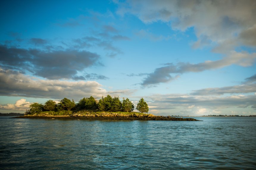Pierre-Yves propose différentes thématiques à ses stages de pêche en fonction des poissons recherchés, de la saisonnalité, des techniques à initier ou perfectionner. Il propose bien entendu la pêche du bar aux leurres – que ce soit aux leurres souples et/ou aux leurres durs (surface et à bavette) mais aussi la pêche des sparidés (daurades grises et royales) à l’appât naturel (à la calée ou au tenya). Le rendez-vous est donné à 8 heures au petit port de Larmor Baden qui jouxte la très belle île de Berder. Leeroy un très bon ami pêcheur de Pierre-Yves et tout aussi amoureux du golfe nous accompagnera pour cette journée. Nous assistons au lever de soleil sur l’île de Berder, c’est tout simplement splendide, un véritable contraste de couleurs s’offre à nos yeux !