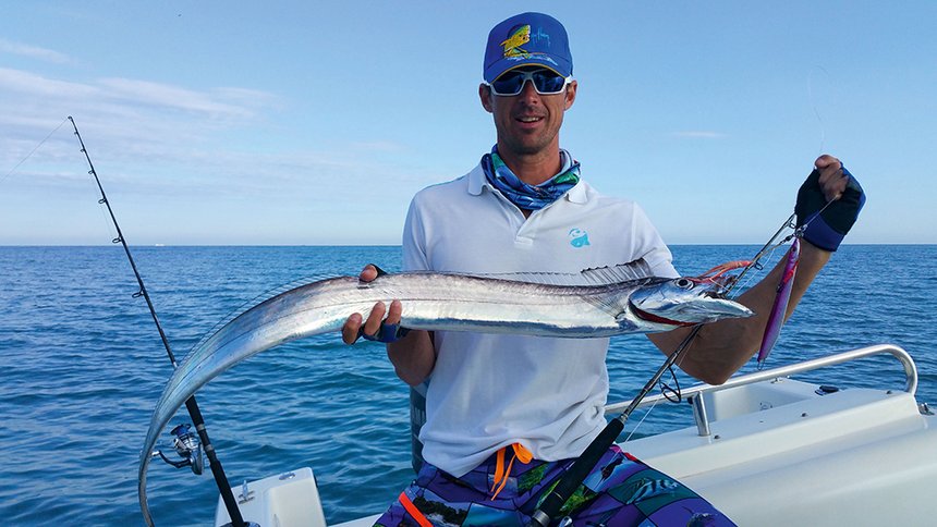 Le guide exerce également la pêche en jigging à l’époque de l’année où les sabres se regroupent.