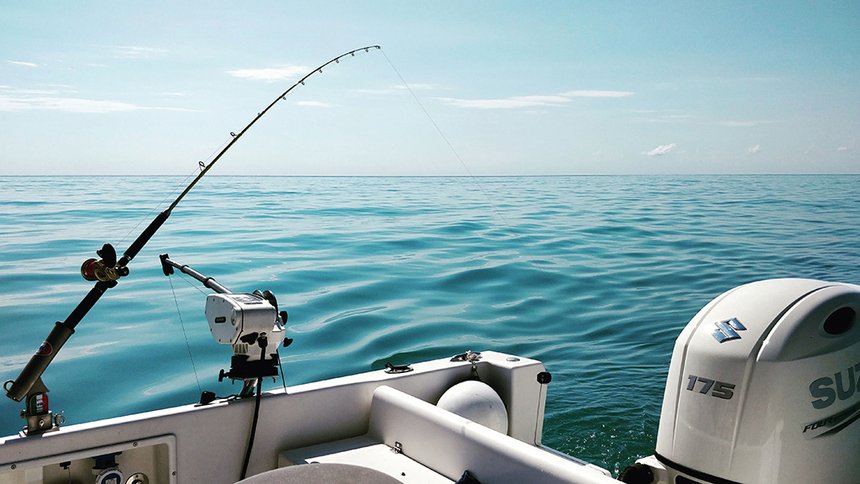 Sur l’arrière du bateau d’Erick, des treuils électriques, pour la technique de pêche au downrigger, sont positionnés.
