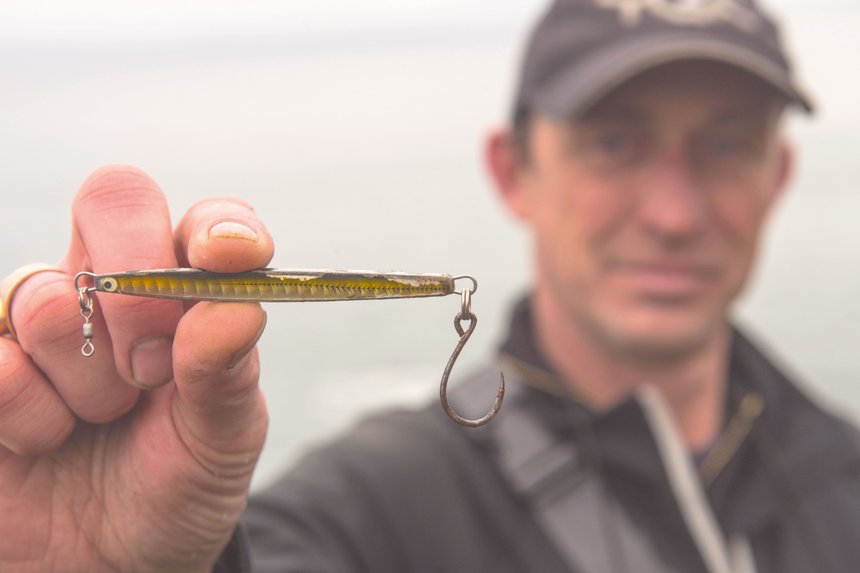 Leurres. Le poids des jigs varie de 10 à 50 grammes en fonction des conditions rencontrées : état de la mer, orientation et force du vent. Une petite préférence pour le P-Boy jig casting de la marque Tackle House, en 15 et 25 grammes. Ce jig de forme aérodynamique se lance très loin et permet d’atteindre les postes éloignés tout comme le Shore Gabarit de la marque Tackle House, en 18 et 30 grammes. Un leurre aussi prévu pour atteindre de grandes distances de lancer. Mais sa forme permet une récupération relativement lente. Gaël utilise très souvent les hameçons simples pour armer ses jigs cela permet de réduire les perruques du leurre avec la ligne lors des animations, les accrochages avec le fond, assure un meilleur ferrage et moins de décrochages du poisson lors des combats. La remise à l’eau des prises est aussi largement facilitée.