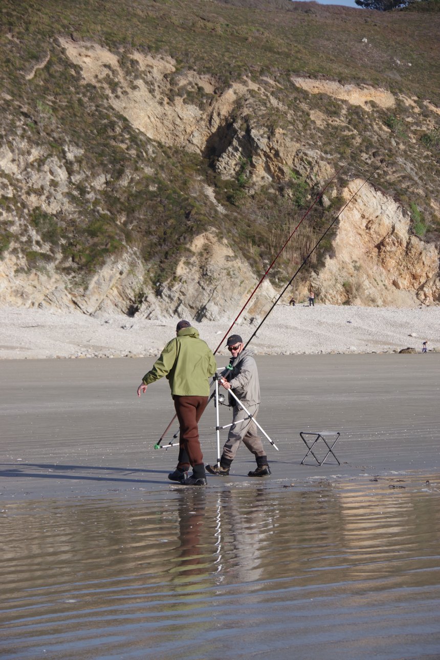 Une plage est, par définition, un terrain relativement homogène. Le poisson n’y demeure pas de manière régulière. Il circule à la recherche de nourriture (vers, coquillages, lançons). Compte tenu de cette forte mobilité, on peut être tenté de multiplier le nombre de cannes afin d’augmenter ses chances de succès. Avec trois cannes en action de pêche, il est possible de varier les montages, les appâts et d’étager les distances de pêche afin de bien repérer où se trouve le poisson. Avec cette configuration, vous pouvez aussi faire en sorte qu’au moins l’une de vos cannes soit dédiée à une pêche à reculer avec un gros appât coriace (lanière de calamar, bulots…) donc susceptible de durer plusieurs heures sans être relancée. C’est une technique efficace sur les plages peu pentues, l’objectif étant de faire en sorte que l’appât soit positionné sur le bas de plage le plus longtemps possible, là où se trouvent le garde-manger et donc les poissons. Avec trois cannes à reculer, on peut espérer qu’une des trois restera pêchante le temps de la marée. En effet, même avec un bas de ligne de fort diamètre et raccourci, on n’est pas à l’abri d’un risque d’emmêlement…