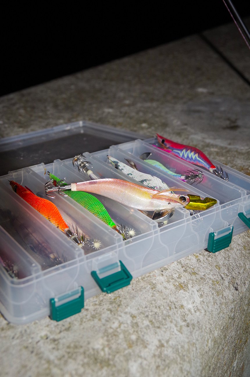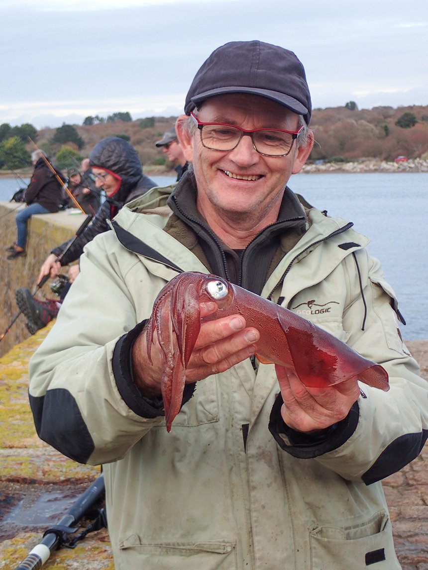 Bref, il convient de trouver la bonne animation mais dans l’ensemble, la lenteur est le qualificatif qui correspond le mieux à l’animation. La touche n’est pas violente, le scion se plie mollement. Le calamar se prend un peu tout seul. Il est déconseillé de ferrer à la touche car on risque de lui arracher une partie de ses tentacules. Un gros spécimen se défend assez bien en tous les cas bien davantage qu’une seiche. Ce n’est qu’une fois arrivé en surface qu’il se manifeste. S’il se décroche, laissez couler la turlutte. Comme la seiche, il revient généralement sur sa proie. C’est à la tombée de la nuit et si possible en un lieu éclairé que les calamars viendront chasser en bande. En effet, la lumière, à condition que le faisceau soit fixe, attire le menu fretin (éperlans, sprats, petits lieus), les proies favorites des calamars. Si ce céphalopode a une très belle prestance dans l’assiette, il en est de même comme appât, surtout ultra-frais. Le bar en raffole !