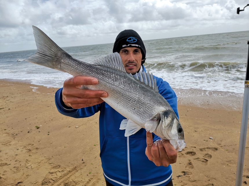 Ce que j’ai remarqué dans cette nouvelle approche de pêche de jour, c’est que les spots où les beaux poissons sont au premier plan de nuit peuvent être totalement improductifs de jour à cause des nuisibles : les petits poissons en l’occurrence les petits bars. Autrement dit sur ces spots les petits sont beaucoup trop actifs et présents de jour pour que l’on puisse pêcher les plus beaux. Certes le choix des appâts telle une lanière de seiche aurait pu contrer cela mais ayant beaucoup pêché avec des vers je me suis retrouvé piégé par leur voracité. Sur ces spots la nuit les faisait rejoindre la pleine eau et nous permettait de prendre les plus beaux. Pour contrer cela, j’ai dû chercher des spots plus reculés… Les belles journées de mer formée connaissent de l’engouement pour les surfeurs, alors il fallait ne pas hésiter à marcher plusieurs dizaines de minutes pour se retrouver seul face à l’océan. Rechercher donc des espaces plus retirés ce qui voudra certainement dire une marche de quelques kilomètres à pied bien sûr chargé de votre équipement pour trouver un poste de pêche suffisamment dessiné pour apporter de l’intérêt aux bars. Par expérience les bons spots sont la plupart du temps relativement loin et c’est souvent ça qui fait la différence. Et puis quand il fait beau longer la côte n’est pas désagréable tant qu’on n’est pas trop chargé et à l’aise dans ses mouvements, adapter donc votre paquetage et veillez à ne pas trop vous charger. Pour l’année 2021 mes meilleures sorties ont presque toutes été réalisées en pleine journée, comme quoi… dès l’instant que la mer est bien rangée…