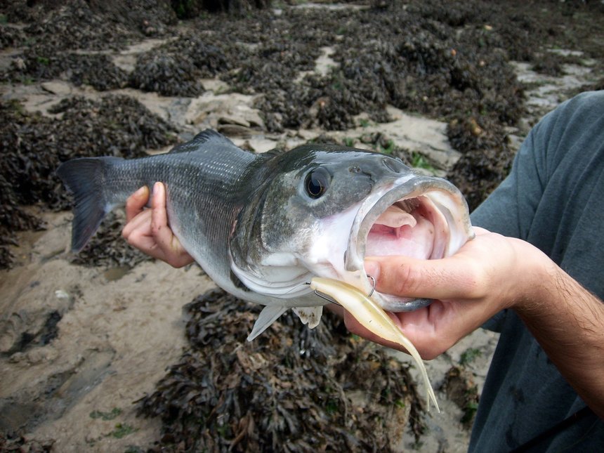 Certains prédateurs, bar en particulier, aiment musarder près du bord, dans très peu d’eau, là où se tiennent crabes verts, crevettes et poisson fourrage. Pour prospecter sans risque ces postes tapissés de roches et de laminaires, rien ne vaut un montage dit weightless, c’est-à-dire sans aucun lest. Le leurre adoptera alors une nage plutôt planante. Ce type de montage est également très intéressant pour explorer les abords des parcs à huîtres, véritables garde-manger regorgeant de nourriture. Avec une tresse fine (une 8 brins, 10 à 14/100, en fonction du poids du leurre), il est possible de lancer à bonne distance, notamment les leurres souples salés dans la masse, qui sont les plus denses. Ce montage est très discret, le bruit de l’impact du leurre en surface étant réduit.