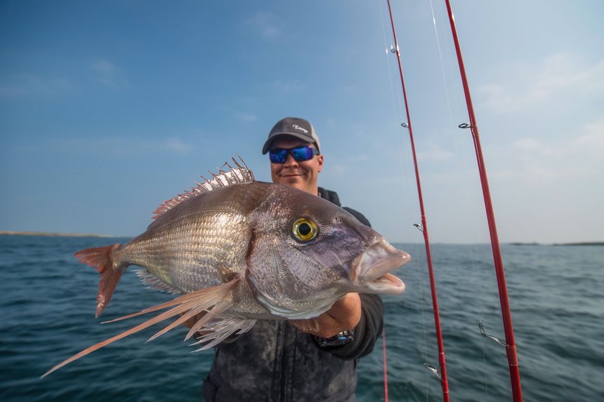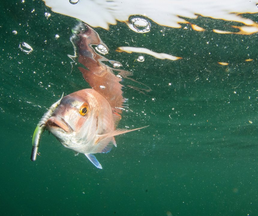 Depuis quelques années, ce poisson est régulièrement pêché sur la côte bretonne mais il n’est pas encore présent sur tous les secteurs. Il est le plus souvent pêché aux appâts, ou avec des techniques mixant appâts et leurres comme le tenya ou le madaï jig. Mais notre ami veut une pêche sans appât naturel. « On peut prendre de jolis pagres aux leurres souples, la première étape est de bien choisir son poste de pêche! »