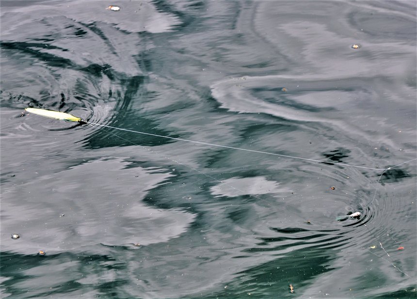 En effectuant des pauses lors de la récupération de votre leurre, le teaser descend lentement sous la surface de l’eau, il scintille et brille davantage, reproduisant une proie. Pour relier l’avançon sur le bas de ligne, réalisez une boucle avec les deux fils, en les passant deux fois dans la même boucle, puis serrez l’ensemble afin de réaliser un nœud. Le choix des teasers est assez personnel, comme pour le choix de vos leurres de surface. De mon côté, j’utilise des bas de ligne prémontés avec des teasers pour confectionner des mitraillettes. Sous forme de plumes et de streamers, les teasers sont montés avec des filaments qui brillent et reflètent nettement dans l’eau. Ils sont légers et ne déséquilibrent pas la nage du leurre de surface. Lorsque vous récupérez votre leurre en effectuant des pauses courtes, le teaser se gonfle légèrement et se rétracte quand vous l’animez de nouveau. Cette action crée de petites vibrations qui amplifient l’attrait de votre leurre de surface.
