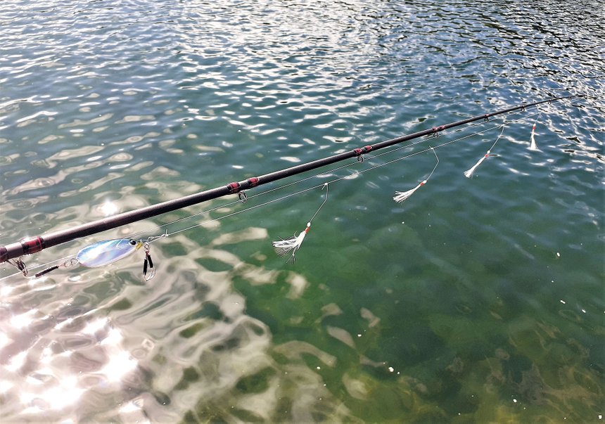 La mitraillette est une ligne constituée de plusieurs teasers imitant des proies, le tout souvent lesté par un plomb. L’associer à un slow jig permet d’obtenir d’excellents résultats en verticale ou dans les chasses.