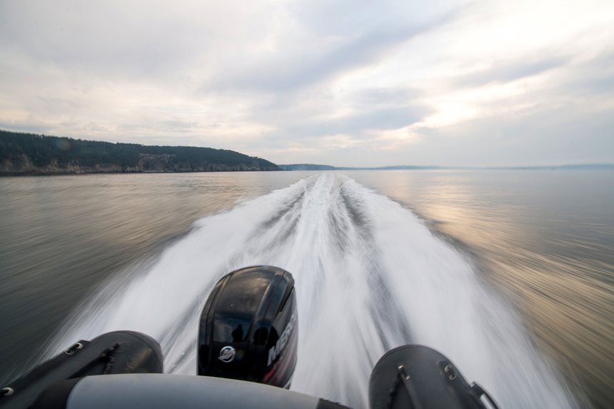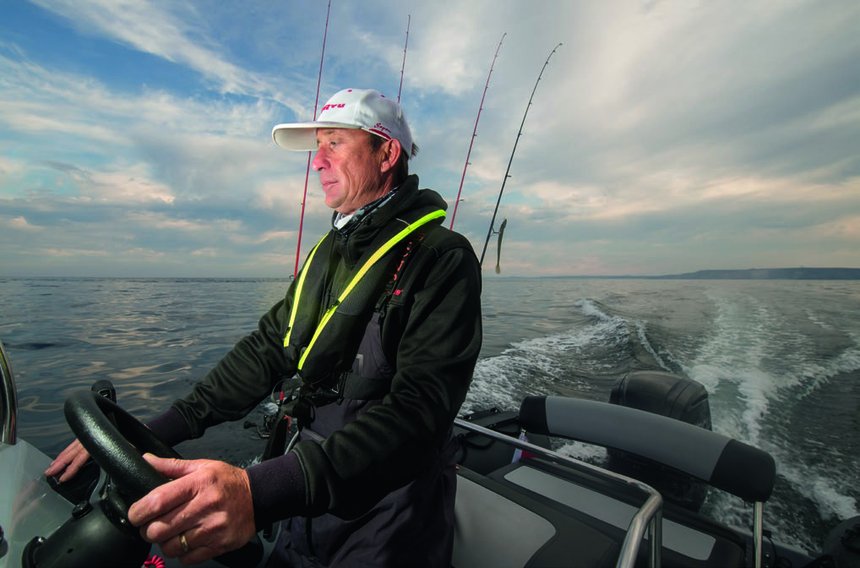 Nous retrouvons Gaël Rognant au port de Crozon. Toujours partant et de bonne humeur, il est de ces pêcheurs avec qui sortir est toujours un plaisir. Maîtrisant un grand nombre de techniques, il est aussi à l’aise en mer qu’en eau douce, capable de pêcher des lieus aux shads depuis un semi-rigide, ou des perches aux spinners dans un petit étang. Ce jour-là, nous retrouvons notre ami pour la recherche de la daurade grise. Il ne faut que quelques minutes de navigation pour trouver le premier poste.