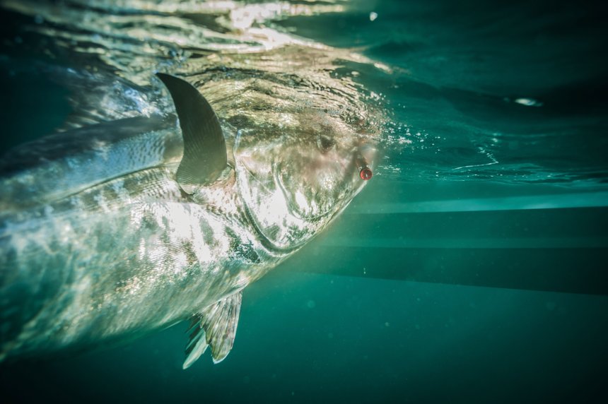 Côté pêche récréative, il convient donc de garder à l’esprit que cette manne qui se présente aujourd’hui n’est pas un fait acquis. Notre comportement doit ainsi être plus que jamais responsable envers cette espèce et s’inscrire dans une pêche durable et respectueuse. L’obtention de bagues de captures régit le nombre de prises de façon drastique dans le cadre d’un quota annuel. La pratique du no-kill (soumise à une autorisation administrative délivrée annuellement par les directions interrégionales de la mer) c’est-à-dire avec relâche immédiate et interdiction de hisser le poisson à bord, doit plus que jamais s’accompagner de bonnes pratiques sur lesquelles nous aurons l’occasion de revenir. Le thon rouge, cet infatigable nageur, suscite la fascination. Il est l’emblème même du poisson de « grand sport » qui, avec le marlin et l’espadon, a toujours fait rêver les pêcheurs, et cela ne date pas d’hier. Ce pélagique est certainement l’un des plus puissants de la planète, taillé pour livrer de redoutables combats. Avec sa tête conique et son corps fusiforme, il est capable d’atteindre des pointes de 80 km/h. Ainsi, ses nageoires latérales se rabattent dans des cavités spécifiques et même sa première nageoire dorsale se loge dans un sillon lorsqu’elle se rabat. Telle une Formule 1 des mers, il n’a pas de mal à faire fumer 400 mètres de tresse, à faire fondre les pignons d’un moulinet, voire à souder les vertèbres de celui qui, arc-bouté sur sa canne, finit par se tétaniser si son matériel n’est pas adapté ou sa technique de combat mal maîtrisée. Nous parlons bien de pêche en stand-up qui, sur de gros spécimens (160 kg et plus), touche à ses limites.