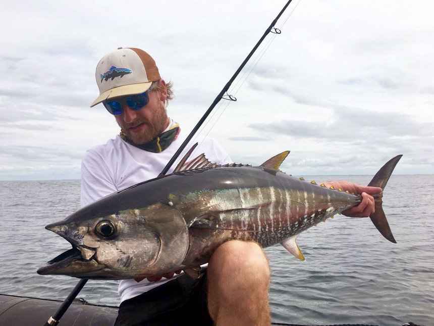 Guide de pêche professionnel basé à Lézardrieux, Christophe Botherel s’est spécialisé sur la pêche du thon parallèlement à celle du bar et du lieu qu’il pratique tout au long de la saison.