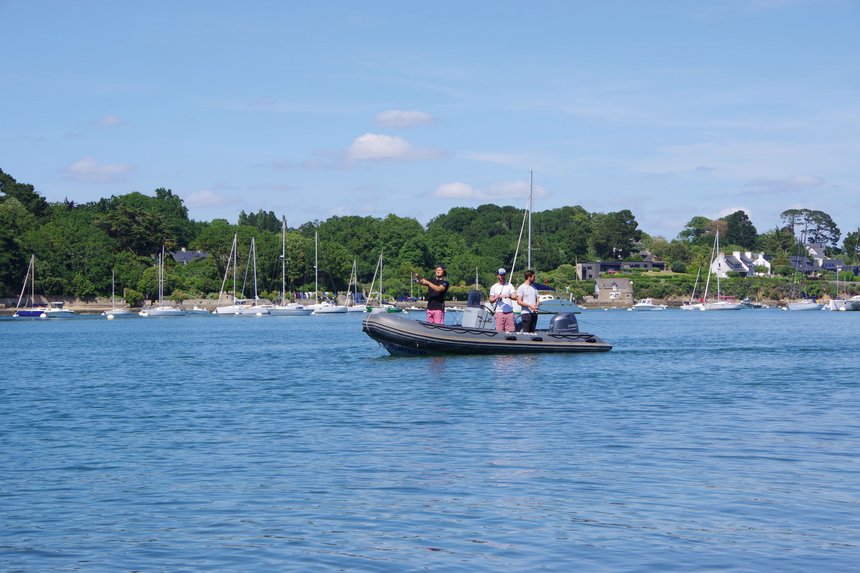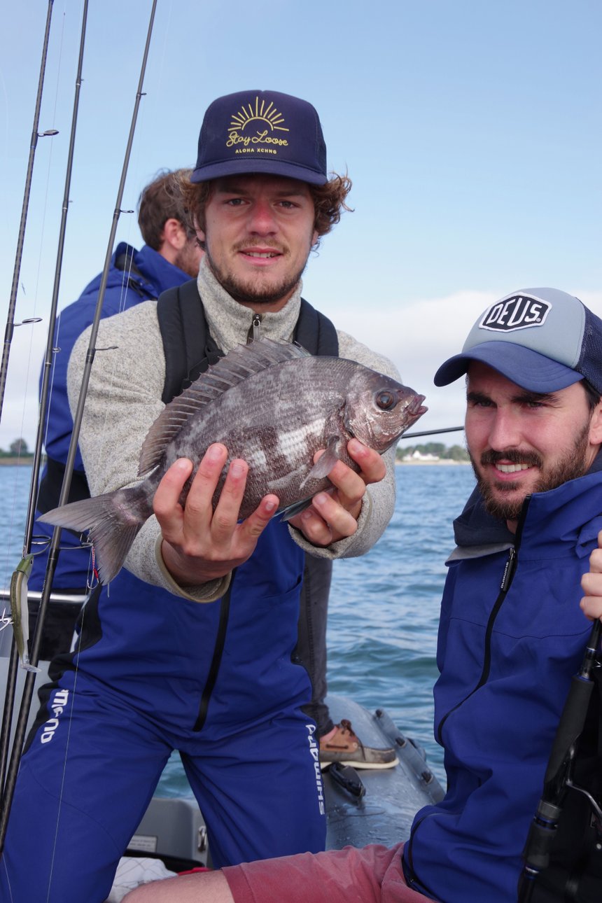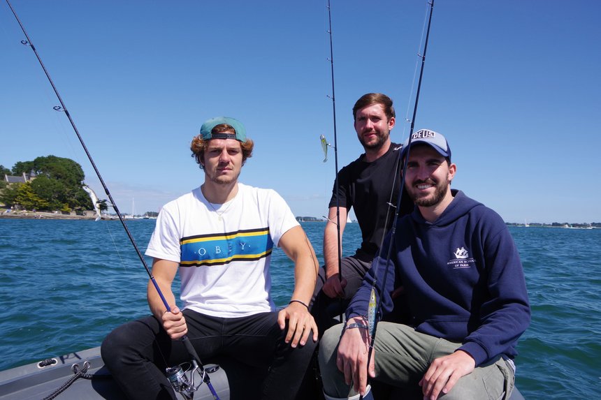 L’histoire commence il y a un peu plus de deux ans. Robin et Tangui travaillent à Paris, dans un cabinet de conseil. Quant à Baptiste, il bosse à Rennes dans la logistique. Ces trois amis aiment se retrouver régulièrement sur leur bateau, canne en main, dans le golfe du Morbihan. Si tous les trois ont une préférence bien marquée pour la pêche du bar au leurre, ils n’hésitent pas à tenter d’autres espèces, dorades grises et royales notamment. En cette belle journée de juin, je les retrouve à la cale de la pointe d’Arradon, en face de l’emblématique île aux Moines.
