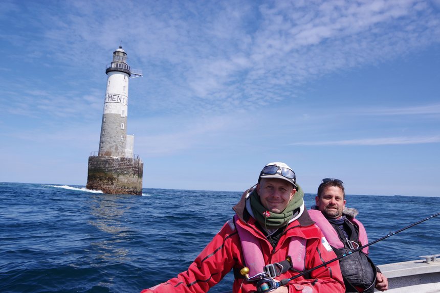 Même si je connais Mathieu Le Bouter depuis plusieurs années, lorsqu’il m’a proposé une sortie sur la chaussée d’Ar-Men, en mer d’Iroise, je n’ai pas caché une petite appréhension tant ce coin mythique est inquiétant. Mais comment refuser ? Une partie de pêche ici, en effet, ça ne s’improvise pas. La météo doit être favorable, la mer la plus calme possible, les coefficients de marée pas trop élevés (entre 40 et 60)… Bref, il faut compter sur un bel alignement des planètes, ce qui semble être le cas le jour dit.