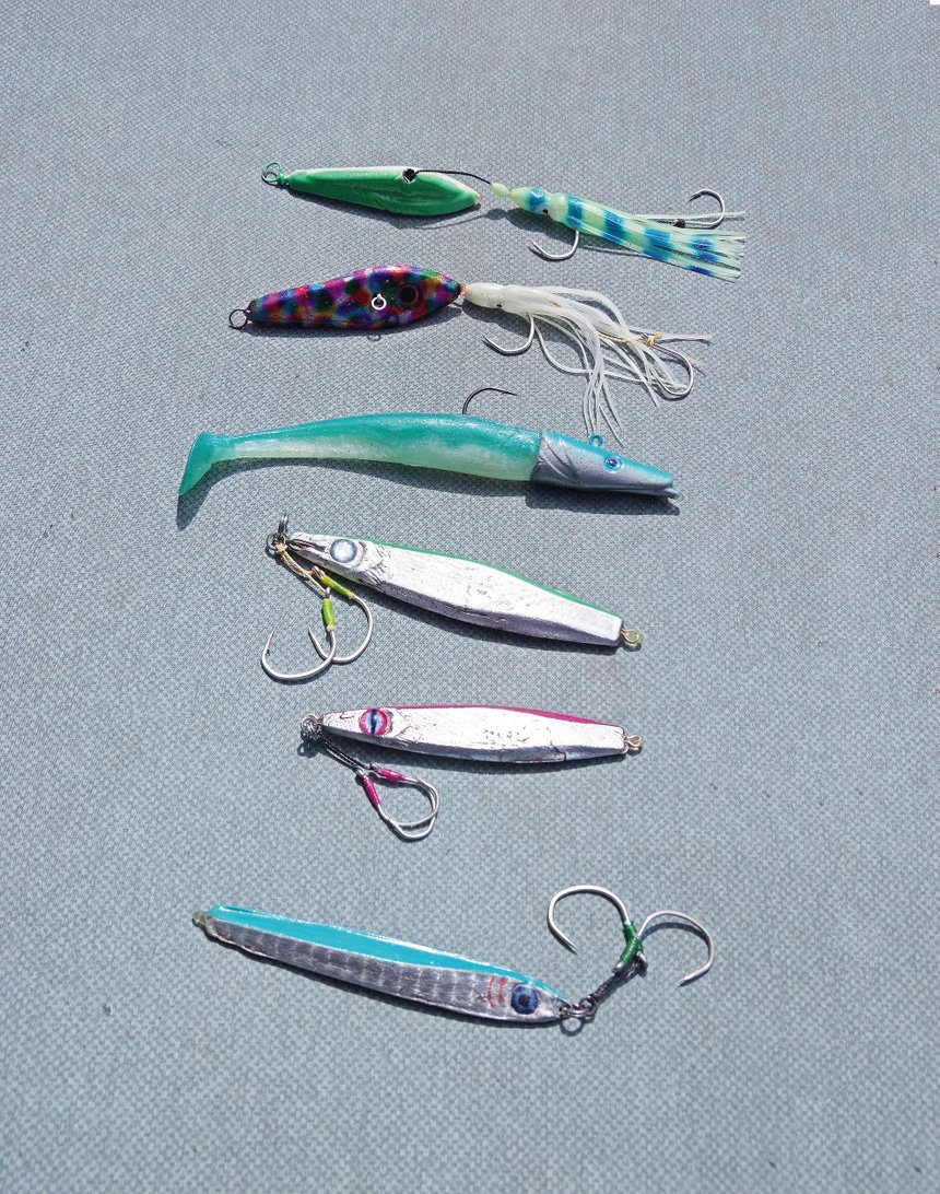 - Leurres (maison) : jigs, flutter jigs 100 à 200g, inchikus 80 à 140g