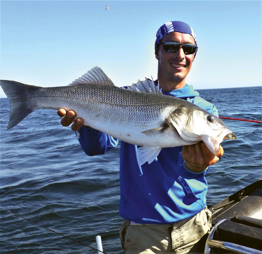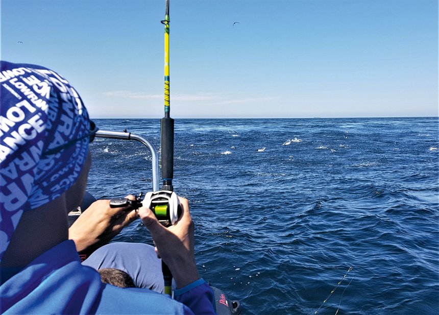 Les prédateurs s’alimentent de petites proies en cette période chaude, telles que des sprats, des éperlans, des lisettes et des lançons. Dans ce cas, il est nécessaire d’utiliser des leurres qui se rapprochent le plus possible de leurs besoins, afin de les leurrer à chaque dérive. Côté leurre souple, j’emploie des modèles de 10/15 cm pour des modèles trapus comme les shads et des modèles de 15/18 cm pour les leurres fins et effilés. Je les monte avec des têtes plombées de 25 à 40 g pour des animations plus lentes et progressives proches du fond, et des têtes plombées plus légères de 10 à 25 g pour les animations sèches entre deux eaux. Les couleurs claires et pailletées fonctionnent bien avec des tons bleu, vert ou blanc. Les jigs fins et casting jigs sont également très pêchant sur des grammages de 15 à 40 g. Ils descendent rapidement et se reflètent davantage dans l’eau dès lors qu’ils papillonnent. Lors de la préparation de votre matériel, privilégiez un ensemble adapté à l’usage des leurres. Vos cannes ne doivent pas excéder une puissance de plus de 40 g pour une longueur de 2,25 m à 2,40 m. Montez un moulinet de gabarit 2500/3000 garni d’une tresse de 12/100 pour faciliter les lancers avec des leurres de petite et moyenne tailles. Puis ajoutez un bas de ligne de 25/100 à 30/100 afin de disposer à la fois d’un montage discret et résistant.