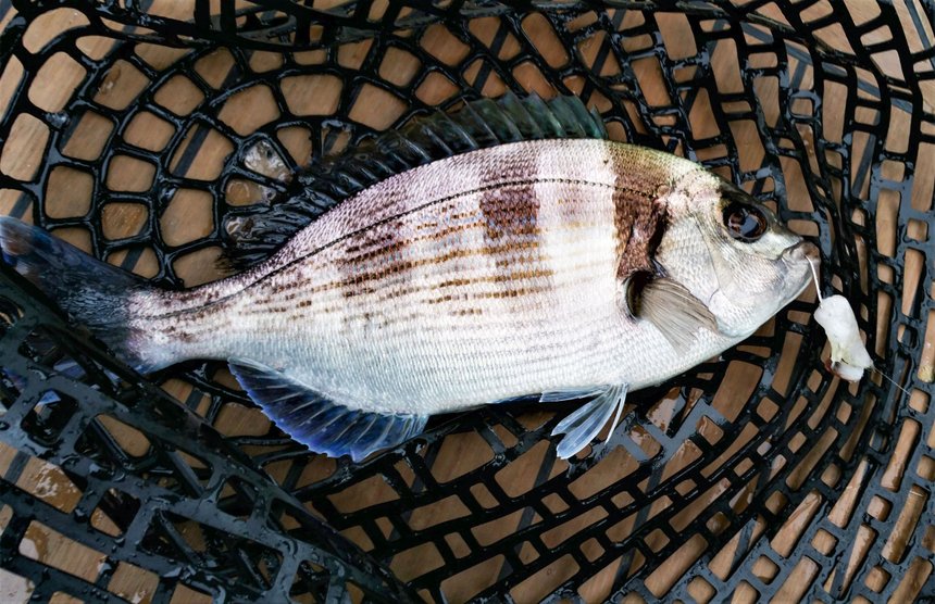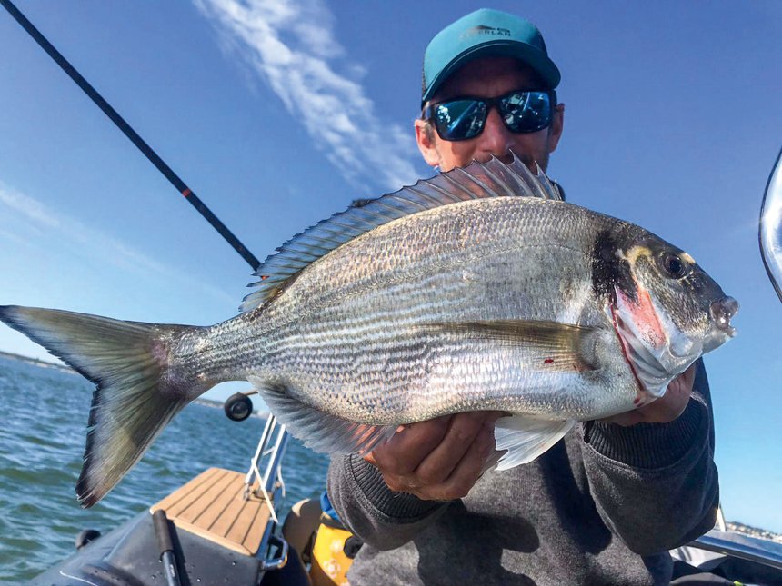 Pour rendre la présentation des esches plus attrayante, il est intéressant de préparer une petite zone d’amorçage. À l’aide de poissons marins mélangés à des granulés de farine de poissons, vous broyez l’ensemble pour effectuer ce que l’on nomme un « broumé » ou une « strouille ». Ensuite vous placez la mixture dans un filet de petites mailles, puis vous descendez le contenu à cordelette à proximité du fond. Cette stratégie est vraiment efficace, les poissons remontent les effluves, guidés par le courant et ne mettent que très peu de temps, pour arriver sur la zone d’amorçage. Aussi et afin d’optimiser la production de l’amorçage sur la zone de pêche, vous commencez par ancrer votre bateau, puis vous fixez votre cordelette à l’avant sur le davier, afin que l’amorçage se disperse vers l’arrière, dans le sens du courant. En procédant ainsi, les poissons interceptent systématiquement vos esches avant d’arriver sous l’amorçage. Les touches seront nombreuses !