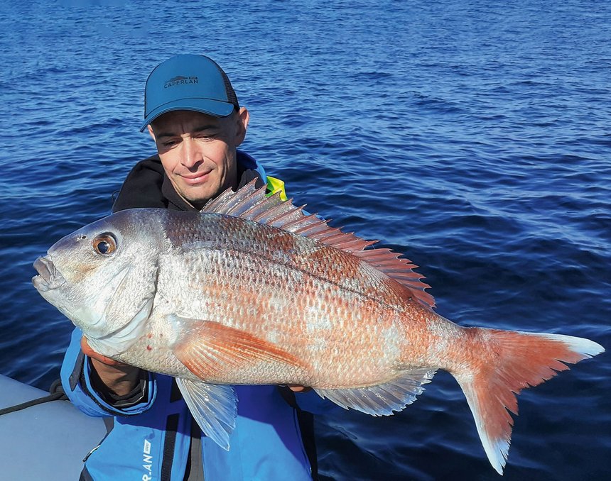 La dérive du bateau par grand fond est un élément important durant votre phase de pêche. Elle vous permet de déterminer le bon grammage du leurre, pour qu’il soit en parfaite adéquation avec la profondeur d’eau dans laquelle vous pêchez. Pour la pêche du pagre, il faut ajuster le grammage le plus finement possible, afin qu’il épouse simplement le fond en l’effleurant. Le but est qu’il plane au contact du fond. Selon le sens du vent et de l’heure de marée, votre bateau ne dérive pas de la même manière. Pour ce faire, effectuez une ou deux dérives assez courtes, afin de voir comment se positionne le bateau, et comment il dérive en amont du poste où se tiennent les pagres. Et une fois la bonne dérive, vous commencez à descendre vos lignes. C’est une pêche de précision, et comme les pagres sont des prédateurs malins et méfiants, il vaut mieux opérer avec la bonne méthode dès la première descente du leurre. Toutefois, si le vent se lève légèrement et que votre vitesse de dérive augmente, vous pouvez utiliser une ancre flottante, qui permet de ralentir votre vitesse, et de conserver ainsi le même grammage du leurre. Idéalement, votre bateau doit avoir une vitesse de 0,5 à 1 nœud de dérive. Au-delà, il faut lester nécessairement la ligne, ce qui peut rendre le montage moins pêchant.
