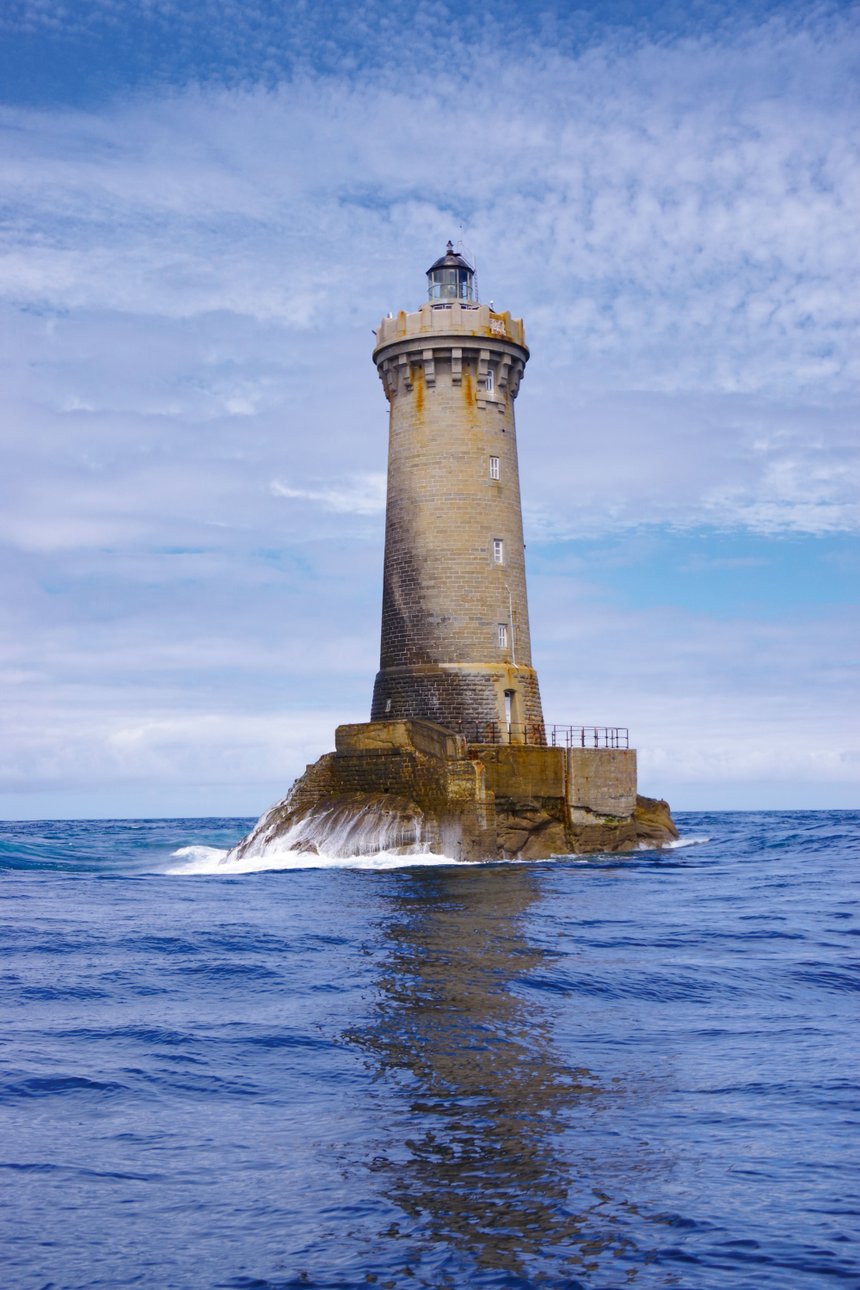 Nous voguons en direction du phare du Four qui, par son emplacement, fascine. Il marque le partage des eaux entre la Manche et l’océan Atlantique. Jérémy nous positionne à l’ouest du phare. En face, c’est l’île d’Ouessant. « Flot ou jusant, peu importe ! L’essentiel est de privilégier les coefficients ascendants compris entre 60 et 70. Au-delà, le courant de marée est trop puissant. »