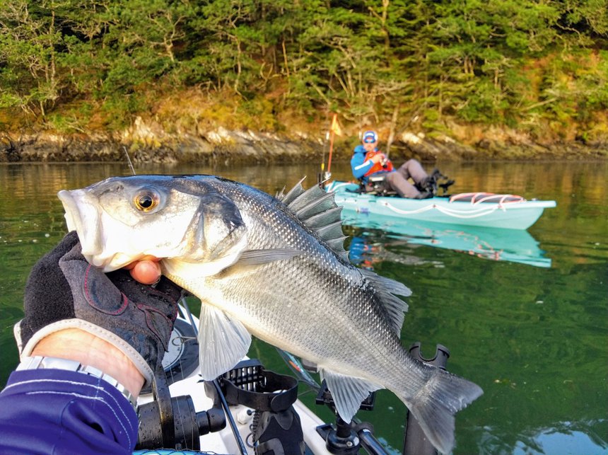 Si vous pratiquez avec un kayak à pagaie, montez un porte-canne devant vous, faîtes en sorte que l’orientation de la canne ne vous gêne pas, prenez l’habitude de mettre votre épuisette sur le bord opposé à votre bord de traîne, ce sera plus facile pour attraper celle-ci au bon moment et ça peut éviter que votre ligne de traîne ne se prenne dedans pendant la traque… Bien sûr l’emploi d’un kayak à propulsion assistée est plus facile pour ce type de pêche et surtout, c’est plus réactif car, dans ce cas, la canne est tenue à la main sur le côté et la touche se vit en direct dans votre bras. Là aussi, le réglage de votre frein de moulinet doit être au top. Pour cette pêche de traîne, une canne de puissance 12/42 g, par exemple, sera tout à fait adaptée, gardez les cannes plus légères pour la pêche au lancer-ramener. Un moulinet 3 000 ou 4 000, solide, sera le compagnon idéal. Cet ensemble pourra également vous servir plus tard dans la saison sur les émissoles ou sur les bonites si elles rentrent… Je laisse une longueur de traîne de 20 à 30 mètres derrière le kayak. Tenez compte de cette longueur de bannière dans vos évolutions, surtout si vous êtes dans une zone de mouillage, avec les bouées et les filins qui sont autant de pièges sous l’eau pour votre poisson-nageur. Ainsi muni de ces informations, et équipé en conséquence, vous pourrez débusquer ces premiers bars de début de saison sur pas mal de zones qui se prêtent à ces types de pêche.