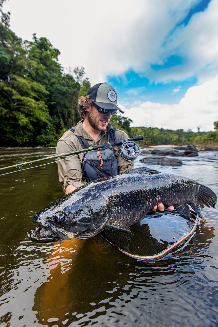 Yann a toujours été un moucheur et un compétiteur de talent. Minimes, cadets et juniors au championnats de France jeune, il a remporté deux fois le titre ultime de champion de France et a débarqué en pleine jungle avec le bagage technique d’un compétiteur altiligérien. Il a été éduqué à la nymphe à roulette avant que la grippe espagnole ne remplace le 18 centièmes, les bas de lignes polyvalents et que la plupart des moucheurs se mettent à tousser des perdigones. Il me raconte qu’un poisson mystérieux vit dans les eaux noires des fleuves et rivières de Guyane, un carnassier nocturne aux crocs de pitbull et à l’armure de CRS : Hoplias aimara. Mais comment capturer cette créature à la mouche ? On trouve peu d’informations sur Internet et la population est assez inégale en fonction des rivières ou des criques où il vit. La solution : passer des heures et des heures au bord de l’eau à le chercher et tenter de le comprendre. Après plusieurs années à vivre au bord du fleuve faisant office de frontière avec le Brésil, Yann décode de plus en plus finement le comportement de ce poisson qui évolue dans un milieu fluctuant entre 100 et 4 000 mètres cubes seconde de la saison sèche à la saison des pluies.
