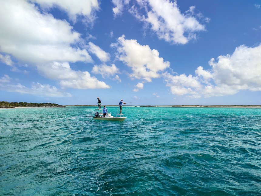 Le lendemain matin, après un copieux petit-déjeuner et un briefing détaillé, nous prenons la petite route qui nous mène à l’embarcadère où nous attendent nos guides et leurs bateaux. Inutile de vous dire que le minibus est bondé de cannes ! Pendant le court trajet Herlé et Jean Paul tous deux associés m’expliquent qu’ici les bonefish sont de taille supérieure à la moyenne grâce à des milieux naturels parmi les plus riches de la planète. En effet, les flats à mangroves sont quotidiennement envahis par les marées des eaux de l’Atlantique et du Golfe du Mexique qui s’immiscent à travers 700 îles et 2400 îlots.