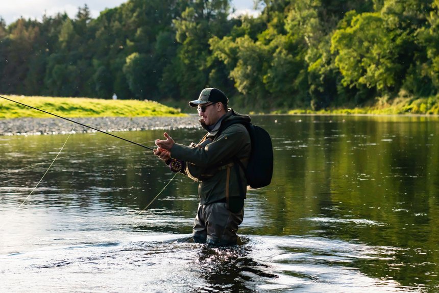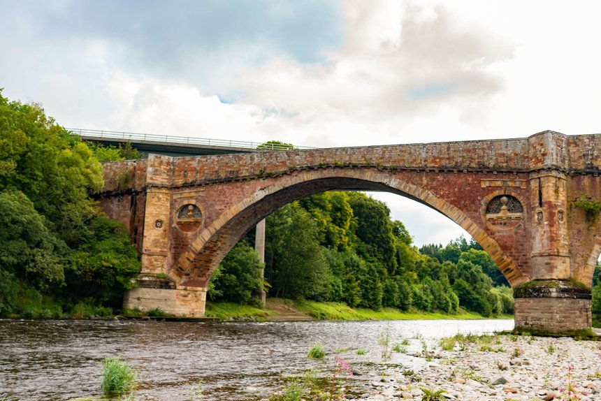 Le 26 août 2023, nous quittions donc la capitale des Gaules pour atterrir, un peu plus de deux heures après, à l’Edinburgh Airport. Le vol se déroulait sans encombre et nos bagages arrivaient à bon (aéro)port. Si je devais être lucide, je me décrirais comme d’un naturel pessimiste : j’étais presque convaincu que mes valises s’égareraient quelque part entre la France et l’Écosse, hypothéquant ainsi nos journées de pêche. Fort heureusement, la compagnie aérienne est mieux organisée que je ne le supposais. Nous récupérions rapidement nos effets respectifs et allions prendre possession de notre véhicule. En effet, en raison de la distance séparant l’aéroport de notre habitation, nous avons été contraints de prévoir une voiture. En apparence anodin, ce choix n’était pas sans conséquence : outre-Manche, cela signifiait conduite à gauche et, surtout, ronds-points inversés ! Martin ayant eu la charge de la location de la voiture, il avait donc l’honneur et le privilège d’être le conducteur d’une magnifique berline aux commandes inversées. Accompagnés par le doux son des klaxons écossais, nous nous rendions à Melrose, petite ville de 2 500 âmes, et nous installions un cottage joliment typique. Se trouvant à seulement 500 mètres de la rivière Tweed, il n’avait pas été difficile de le choisir… Le dimanche matin, nous avons tôt fait d’aller chercher nos cartes de pêche à l’épicerie locale. La France fonctionnerait comme l’Écosse si nous n’étions pas adeptes de la réciprocité : les associations écossaises gèrent les portions de rivières et vendent des fishing licenses. Cependant, une carte ne permet de pêcher que sur la portion gérée par l’association. Les prix sont, en revanche, raisonnables : à Melrose, le droit de pêche annuel pour la truite et l’ombre se cède à 12 livres (soit environ 14 euros) pour plus 4 kilomètres de rivière pêchable. Une fois la carte acquise, nous glanions quelques renseignements et, une quinzaine de minutes de marche plus tard, nous nous trouvions à pied d’œuvre. J’ignore pourquoi – d’autant que je m’étais correctement renseigné sur la rivière ! – mais la Tweed était, dans mon esprit, une rivière de taille moyenne. C’est en se trouvant face à ses 50 mètres de large, à son puissant courant et à sa couleur sombre que je prenais conscience de ce qu’elle était vraiment.
