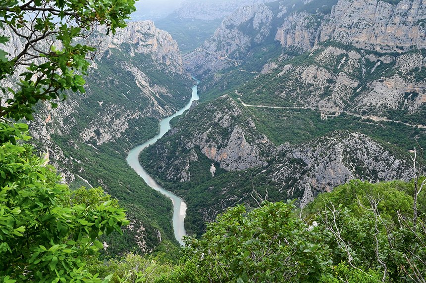 Mais restons concentrés sur notre objectif du jour : la découverte du Grand Canyon du Verdon, l’un des plus beaux d’Europe, si ce n’est le plus beau ! Arrivés à l’Auberge des Cavaliers, à quelques kilomètres de Aiguines, par la D71, nous stationnons là où débute un chemin éponyme ! Un conseil, faites comme nous, prenez votre souffle sur sa terrasse suspendue à une vertigineuse paroi minérale qui offre une vue grandiose sur le Verdon. Époustouflant de beauté !
