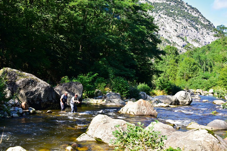 La fédération de pêche des Pyrénées-Orientales est d’ailleurs un partenaire majeur de la compétition en recevant une manche en rivière (Têt) ainsi que toutes les manches en lac (Carlit et Camporells). Il faut saluer les décisions fortes qui ont été prises par cette fédération, comme d’abaisser le quota de captures à seulement deux salmonidés sur les lacs du massif du Carlit et mettre une maille à 25 cm dans les lacs de première catégorie, bravo ! La fédération de l’Aude a également une réglementation résolument tournée vers la protection de nos salmonidés, avec cinq prises maximum conservées toutes espèces confondues et seulement deux ombres communs d’au moins 35 cm. La maille a aussi été relevée à 23 cm pour la truite sur une grande partie du linéaire du fleuve Aude. Enfin, la fédération de l’Ariège avec le Vicdessos, ce superbe affluent de l’Ariège. Au niveau technique, ce championnat va être très relevé ! Les pêches fines, que ce soit en nymphe ou en sèche, vont être mises à l’honneur et vous pourrez observer ce qui se fait de mieux en la matière avec les membres de notre équipe !