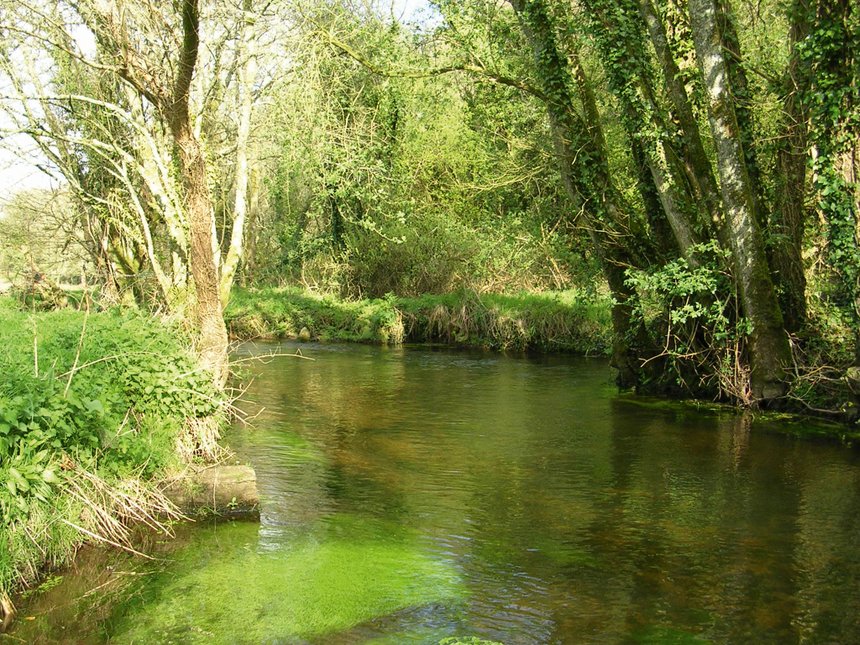 Plus en aval, j’apprécie beaucoup le secteur autour de Saint-Yvi où la rivière s’élargit. Anciennement classé en parcours mouche, ce joli secteur détient de jolis trous où de beaux poissons s’épanouissent, et qui à cette époque pouvaient atteindre de belle taille car souvent remises à l’eau. Sur la partie aval, dans les prairies longées par la voie ferrée, ce tronçon alterne courants et plats. Ce secteur avec de nombreux spots sablonneux est productif pour la pêche à la mouche de mai. Les années se suivent et ne se ressemblent plus, mais très souvent à partir de mi-mai, les truites sont déjà dans l’attente de ces grands éphémères. Si les éclosions n’ont pas encore lieu, il faut pêcher les postes avec de petites mouches d’ensemble, ou en nymphe. Les modèles sur hameçon de dix coloris jaunâtre fonctionnent très bien à cette période, car imitant les nymphes de mai. Les imitations de larves de sedge, verdâtres sont également très prenantes dans cette rivière et peuvent ressembler à la chenille du saule, une des friandises préférées des truites.