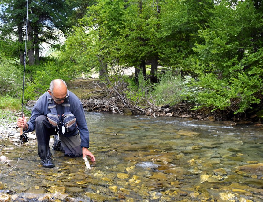 Dans l’absolu, il peut y avoir une évolution du matériel en corrélation avec l’élévation progressive du niveau du pêcheur. C’est-à-dire que ce dernier peut tout à fait démarrer avec un chest pack en pratiquant une pêche mono technique en sèche pour ensuite se diriger progressivement vers un gilet qui lui permettra de transporter davantage de matériel lors de ses sessions en nymphe au fil, à vue et autres. À titre personnel, j’ai toujours été fan du gilet. Pas vraiment par son côté pratique, mais plus par gain de temps entre chaque partie de pêche. Pas besoin de « vider ses courses » à la fin de la journée pour ensuite recharger avec les mouches du lendemain. Tout le matériel reste à l’intérieur et garde sa place tout au long de la saison. Les points cités plus haut entrent aussi évidemment en compte. Les artificielles efficaces la veille restent sur le patch, un petit réassort de temps en temps pour être sûr de ne manquer de rien, et c’est reparti ! En revanche, quand cela est possible, j’invite les moucheurs en herbe à démarrer en sèche avec un chest pack pour toutes les raisons citées dans cet article.