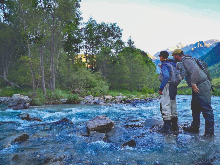 Généralement on décide de pêcher en sèche lorsqu’on observe des éclosions d’insectes ou des gobages installés. À l’ouverture et en début de saison, des éclosions de march brown et autres Baetis rhodani aux heures chaudes peuvent nous permettre de tirer notre épingle du jeu. L’été, les coups du soir restent des classiques. Notamment grâce aux trichoptères ou « sedges » qui attendent patiemment une baisse thermique et lumineuse pour démarrer leur valse. L’activité de surface de fin de saison reprend, la plupart du temps, aux mêmes horaires qu’au printemps. Notons qu’en torrent ou autres petites rivières, il peut être intéressant de « pêcher l’eau » ou de pratiquer une pêche courte à tous moments de la journée en gardant son bas de ligne dans une position diagonale ou complètement verticale. On provoquera ainsi l’instinct opportuniste des poissons à partir de la fin du printemps et ce jusqu’en septembre. Les premières sensations… À mon sens, si le jeune moucheur décide d’être productif, il aura plutôt intérêt à aller vers la traque de plusieurs espèces piscicoles. En s’intéressant uniquement aux truites fario autochtones ou autres ombres communs, un « temps d’adaptation » pour connaître leurs mœurs, leurs rivières, les postes de pêche sera indissociable de résultats corrects et réguliers. Ces salmonidés pardonnant rarement les erreurs du pêcheur. Pour les autres espèces en revanche c’est différent, et certaines comme les truites arc-en-ciel (dans des parcours spécifiques) offrent des combats tout en puissance qui procurent de belles sensations. Les parcours « catch and release » abritant de belles populations de cette espèce sont du pain béni pour réussir vos premières sessions. Tout comme certains torrents de montagne qui peuvent dévoiler une densité intéressante de saumon de fontaine (Salvelinus fontinalis). Peu farouches et ripailleurs, ces derniers ne rechignent jamais longtemps à prendre votre mouche même si sa présentation n’est pas parfaite. Les cyprinidés gobeurs comme les chevaines et autres vandoises et rotengles, sont eux aussi des partenaires de jeux dociles qui vous aideront lors de vos premières sorties, à assimiler rapidement les bases de la pêche à la mouche sèche.