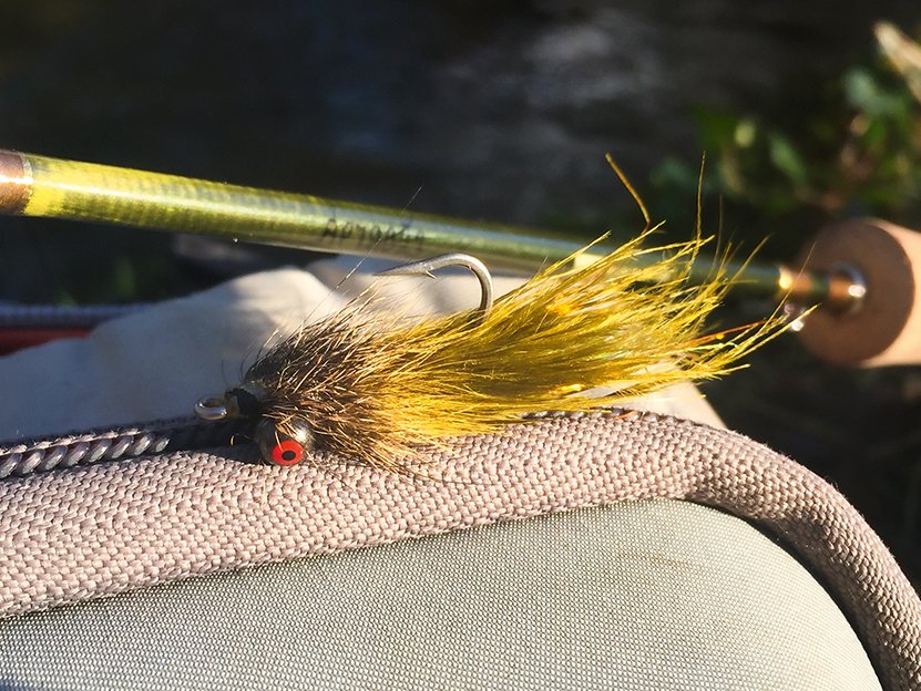 Il faut toujours avoir un ou plusieurs streamers dans ses boîtes en période d’eau froide et haute de début de saison. Ce modèle est un vrai passe-partout grâce à ses coloris olive et beige. Il peut s’apparenter à un vairon, un chabot, une loche, très recherchés par les truites qui veulent se refaire une santé après l’hiver !