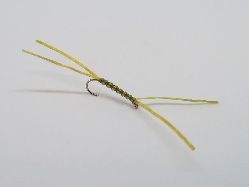 Si l’imitation de ver de terre, le « worm », est toujours bien utilisée sur les grands réservoirs anglais, il est largement détrôné par le best-seller du moment l’Apps worm. Cette imitation censée imiter le ver de vase a été développée par le fameux compétiteur britannique Peter Appleby (d’où le Apps) est en passe de devenir l’une des mouches les plus utilisées au Royaume-Uni et va probablement avoir un bel avenir chez nous. Bien que beaucoup trop gros pour ressembler à un ver de vase, l’Apps peut décemment imiter toutes sortes de vers, de vermines, se tortillant sous la surface et ne laissant pas les truites indifférentes. À plusieurs reprises, je l’ai testé en comparaison avec des worms ou des « norautos », deux mouches bien connues de nos « réservoiristes », et son attractivité a, presque chaque fois, fait la différence en occasionnant plus de captures que ces concurrentes.