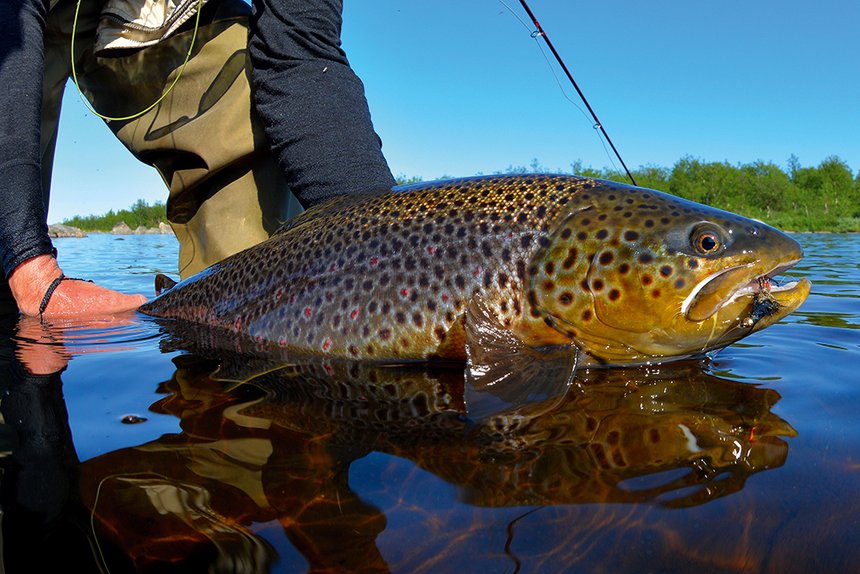 Cette grosse fario russe, s’est laissé séduire par un streamer offert par mon guide mais la qualité de l’hameçon laissait à désirer et la hampe s’est littéralement tordue pendant le combat. J’ai eu de la chance de ne pas perdre mon poisson.