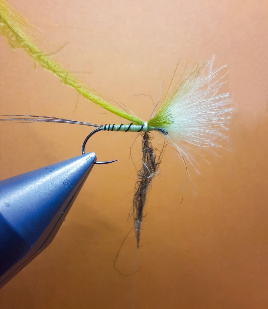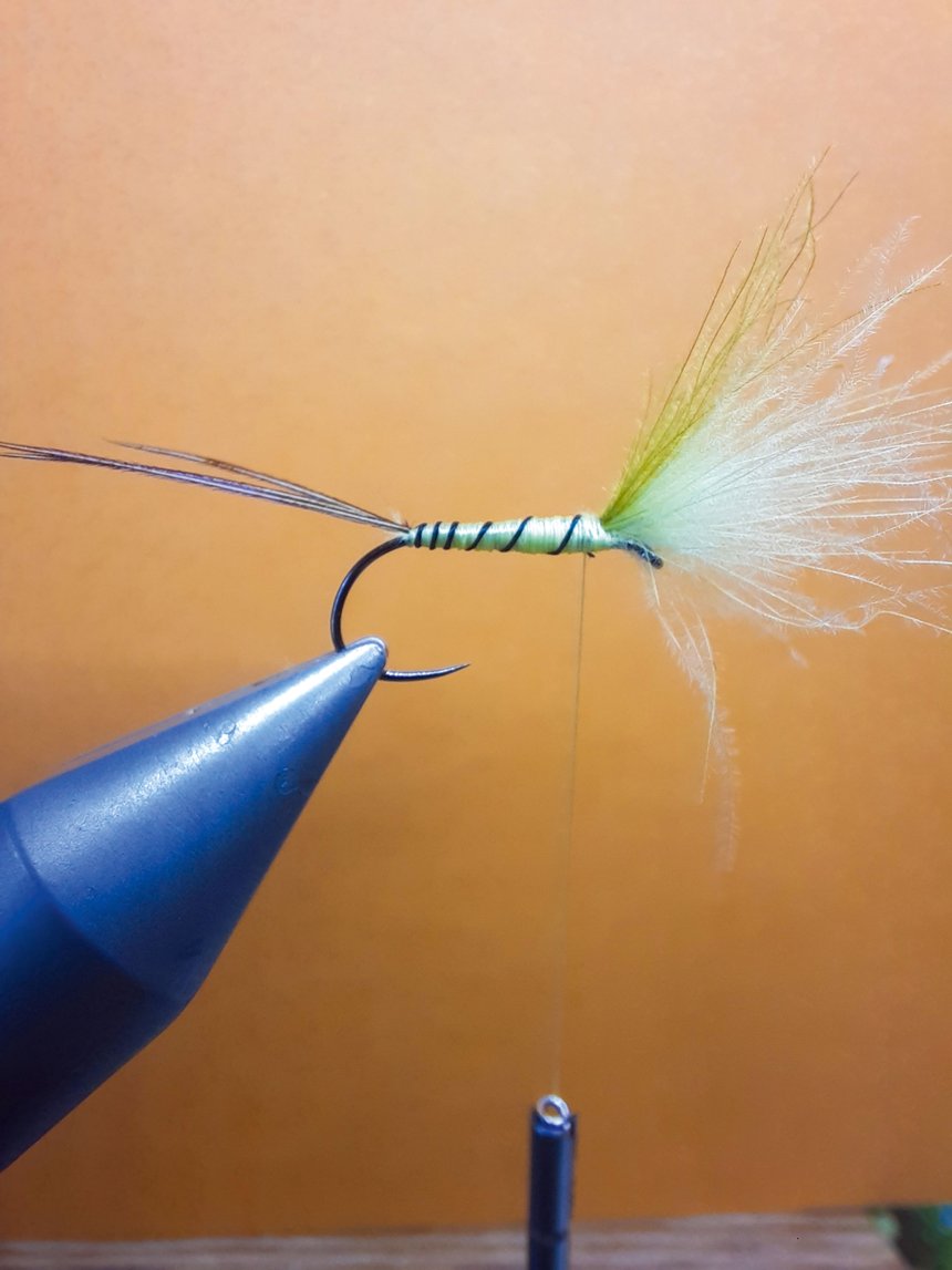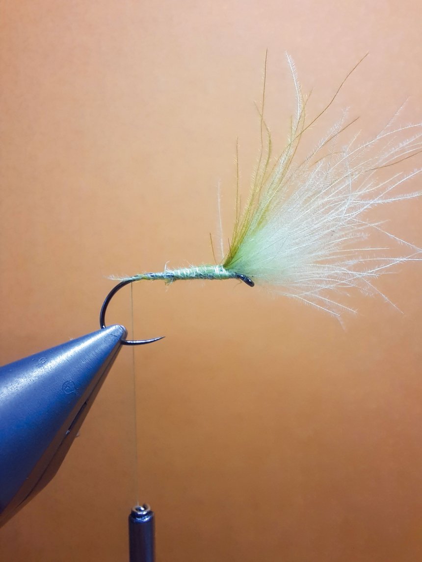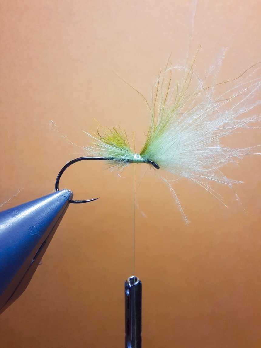 Un montage polyvalent et déclinable à l’infini, ici dans sa version May Fly. Très utilisée en Irlande dans les grands lacs pour la pêche en dérive, elle est très prenante pour deux raisons principales : elle flotte bien, donc elle tient le courant ou la vague. Elle est très souple, donc le poisson la garde en gueule. Il ne faut surtout pas ferrer, juste tendre, d’où la nécessité qu’elle soit gardée en bouche.