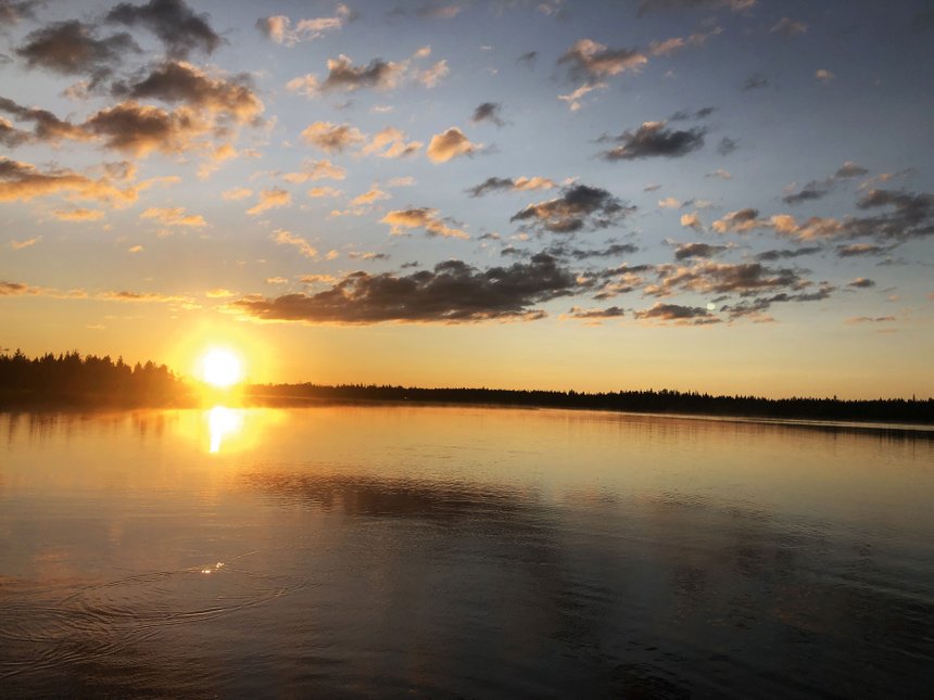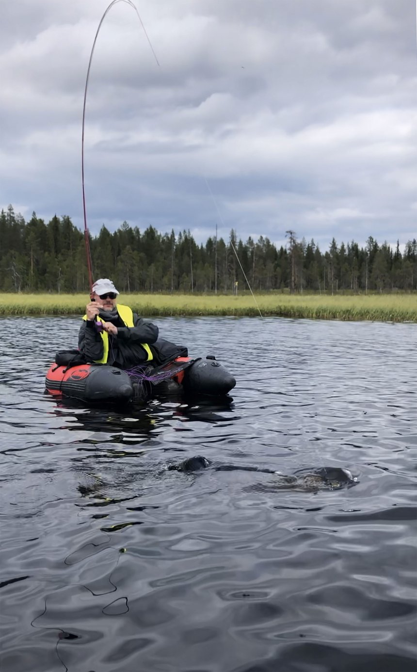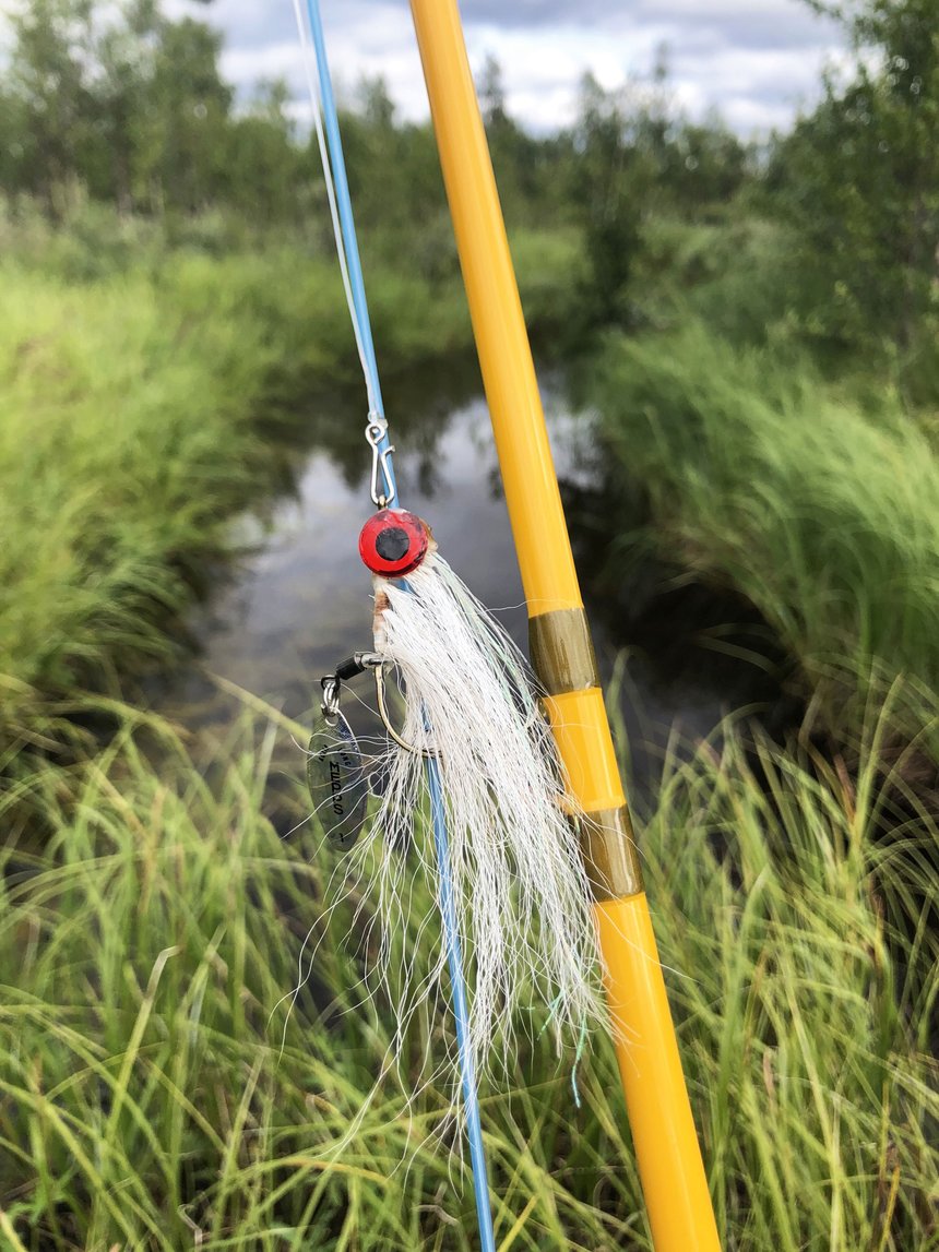 Sous ces latitudes septentrionales, le rythme de la nature est bien différent : tout s’enchaîne plus brutalement, rapidement, tout est plus contrasté, âpre aussi. À l’arrivée des beaux jours, les températures font le yoyo. Lors de notre passage début juillet, le thermomètre était passé subitement de 10 à 29 degrés, un peu excessif je vous l’accorde, preuve que le ressenti du réchauffement climatique au nord est une réalité bien prégnante (CQFD!). La chaîne alimentaire se met en branle dans une sorte d’effervescence. Chacun de ses acteurs, du plus petit au plus gros, veille à sa survie, dans ce qui pourrait s’apparenter à un véritable contre-la-montre. Grossir au plus vite pour survivre ! La fraie terminée, les femelles brochets, accompagnées d’une cohorte de petits mâles, vont encore rester un moment dans ces zones peu profondes, riches en plantes aquatiques : anses et hauts-fonds, chenaux de communication entre les lacs, roselières qui sont autant de garde-manger. La migration du poisson-fourrage vers les bordures, là où l’eau se réchauffe plus vite, répond à un cycle immuable. La suite, nous la connaissons, elle se jouera en un acte jusqu’à l’automne, précoce sous ces latitudes. Un schéma des plus classiques me direz-vous et qui peut être calqué, avec une échelle de temps différente, sur celui de nos contrées plus méridionales. Autant de points de repère pour attaquer une prospection pleine d’espoir, canne à mouche en main !