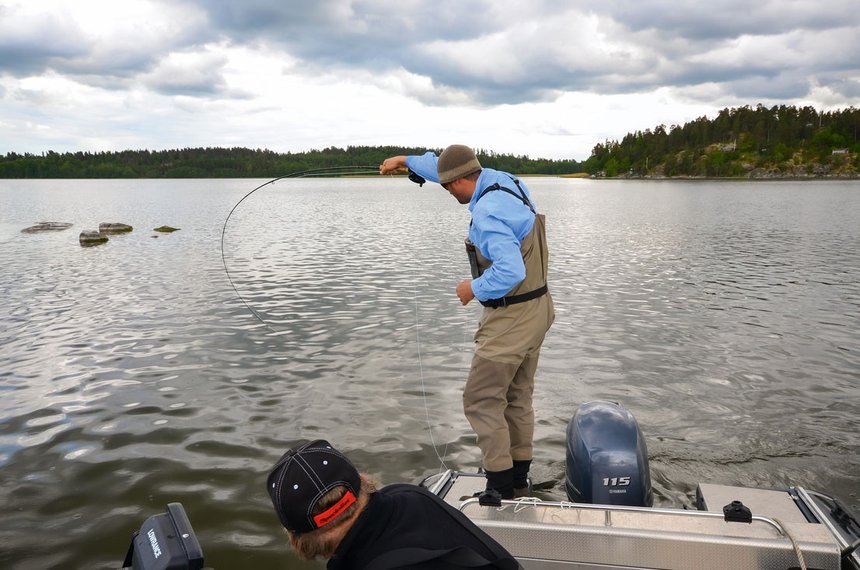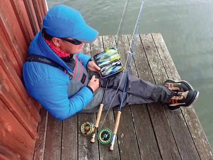 - Sandre : Canne de 9’6 ou 10 pieds soie de 7. Plutôt tactile en pointe. Soie S3 à S8. Moulinet à cassettes avec plusieurs bobines. Bas de ligne de 25 à 30 centièmes. Mouches taille 6 à 1/0. Boobies, razzlers, gurglers, clouser minnow, woolly bugger. Coloris noir, chartreuse, blanc.