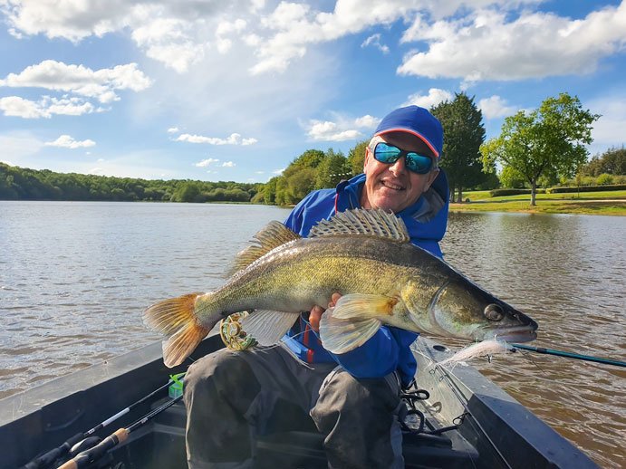 Côté mouches, que vous pêchiez du bord ou en bateau, les bons résultats s’obtiennent avec des soies très plongeantes qui permettent de faire évoluer au raz du fond des streamers de type boobies ou razzlers, qui à chaque arrêt dans la récupération vont remonter de manière verticale dans la couche d’eau. Plus votre bas de ligne est court, plus le streamer va rester près du fond. Il faudra trouver la bonne longueur. Une pointe en 28 centièmes fluorocarbone d’un mètre, reliée boucle dans boucle à la pointe de votre soie est bien souvent suffisante ! Si de grosses concentrations de gardons et de rotengles sont rassemblées dans une anse peu profonde battue par le vent, une soie S3 et un streamer type woolly bugger non lesté, noir ou jaune fluo pourrait bien donner d’excellents résultats. Tricoter très lentement votre soie, les touches seront normalement lourdes avec le sandre mais je vous conseille de ferrer au moindre blocage suspect, on ne sait jamais avec ce diable de poisson ! Bien souvent les gros sandres font des touches qui passeraient presque inaperçues au novice. Si vous ressentez une sensation de lourdeur, un blocage de la ligne ou un arrêt, il faudra ferrer. S’il est certain que le sandre est recherché avec de nombreuses méthodes de pêche, celle à la mouche a un énorme avantage, elle est très peu pratiquée sur ce poisson et il n’y a donc pas encore de phénomène d’accoutumance…