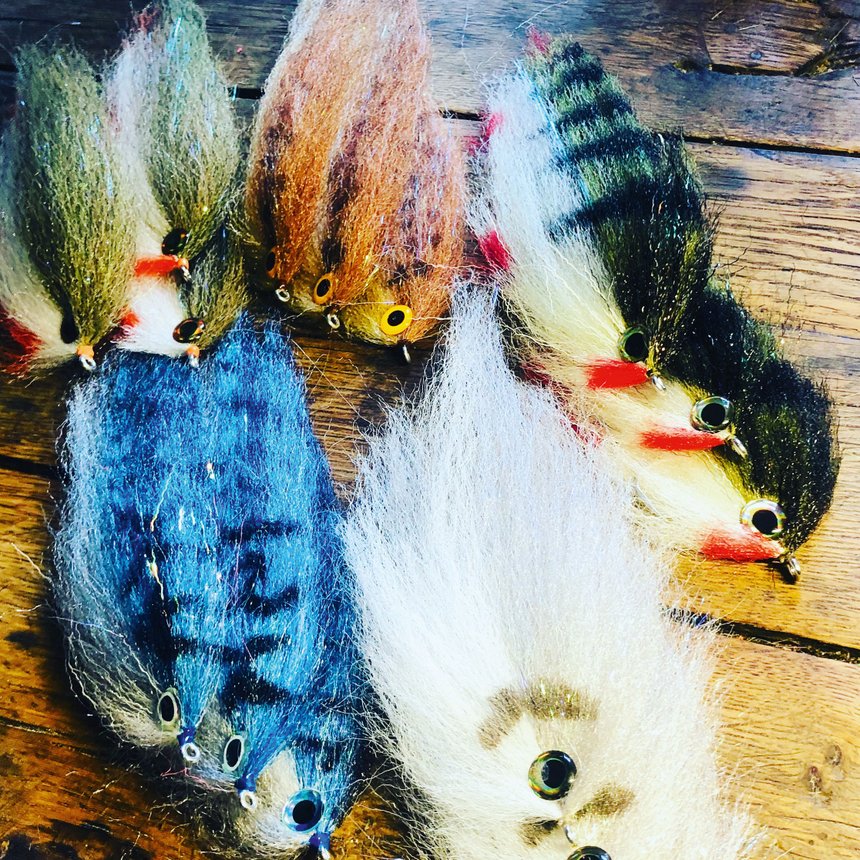 J’adore marier également ces fibres à des dubbing XXL de type predator dubbing ou Minnow dubbing pour jouer sur les contrastes et amener de la brillance. Ces mix de dubbing ainsi préparés permettent la finition de têtes plus ou moins volumineuses avec plus ou moins de contraste. Très chargées, elles confèrent des actions de nage de type « Jerk », votre streamer partira de droite à gauche au moindre strip. Plus fine votre tête donnera une action de pêche plus linéaire à votre mouche. Dans le registre des fibres « courtes » nous trouverons une catégorie qui est très connue dans le montage des mouches mer, mais qui est souvent sous-utilisée pour l’élaboration des streamers carnassier : les fourrures synthétiques ou « Craft fur ». Directement venues de l’univers textile ces fibres très vivantes ont plusieurs avantages comme de ne pas retenir l’eau lors du lancer et leur solidité, ce qui, dans le montage des streamers n’est pas négligeable. J’utilise ces fibres de plusieurs manières, en voici les principaux exemples :