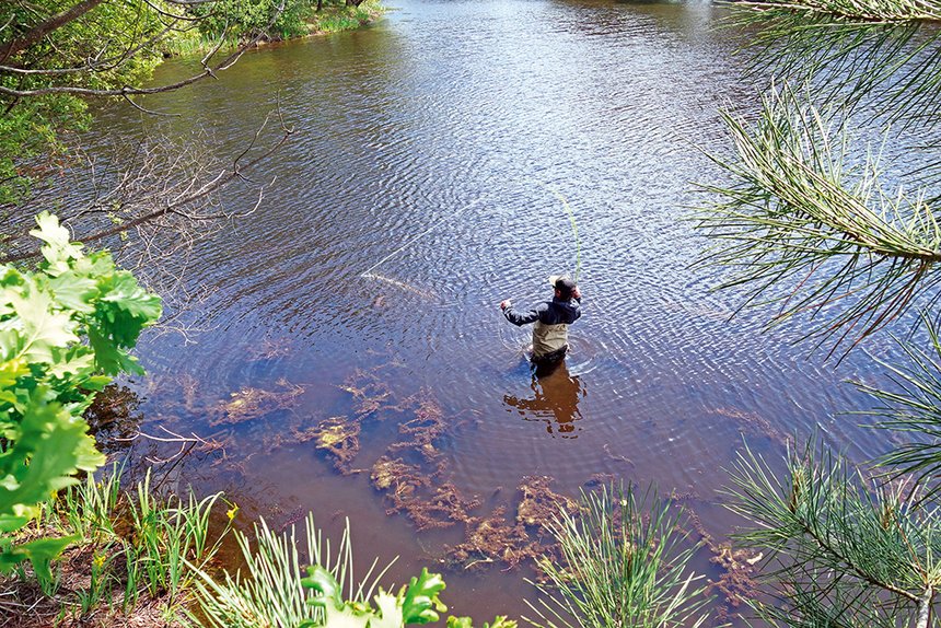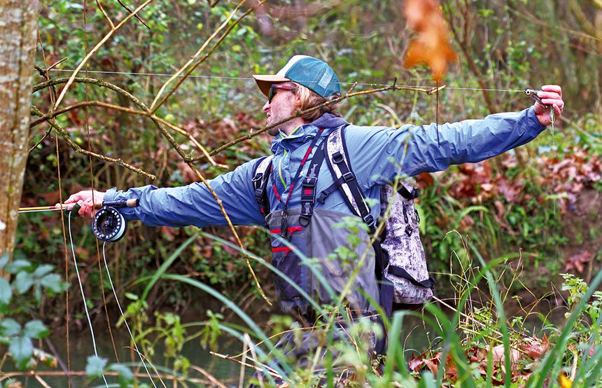 On le sait bien, la pêche à la mouche, d’une manière générale, demande énormément de place. Le résultat et le bon déroulement d’une sortie dépendent bien souvent de l’espace. L’importance du choix du secteur est donc une évidence car, même si certains gestes particuliers permettent de propulser plus ou moins loin un streamer à partir d’un espace restreint, fouetter demeure l’action de base.