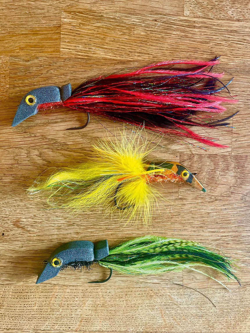 Concernant la taille du popper, attention à ne pas choisir de modèles trop volumineux difficiles à lancer : 10-15 cm maximum. Souvenez-vous que ce ne sont pas nécessairement les grosses têtes qui dégagent nécessairement une sonorité adaptée. Pour le brochet, j’aime particulièrement un modèle équipé d’une queue assez longue (plumes, poils creux de cervidé ou fibres synthétiques) qui offre une nage ondoyante et stabilise bien l’ensemble.