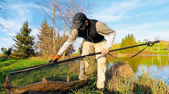 Une pêche printanière est, selon moi, synonyme d’une traque itinérante, menée du bord ou en wading avec du matériel léger. En effet, la taille des streamers utilisés étant plus modeste, une canne de puissance 8/9 peut s’avérer largement suffisante. Une canne plus puissante s’avérera néanmoins utile pour une pêche « à l’arbalète », réalisée au milieu des arbres, afin de prospecter les réseaux racinaires et les berges creuses. Cette pratique nécessite en effet une puissance suffisante capable de propulser le streamer « à l’arbalète » et extraire le poisson de son « bunker » de racines lorsqu’il est ferré.