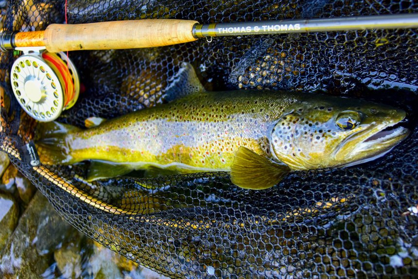 Ici, on gardera la potence du haut, et on utilisera le fluorocarbone. L’espacement des mouches sera plus important entre la mouche de pointe et la potence intermédiaire qu’entre les deux potences. Le top dropper sera plus long que l’intermédiaire, généralement 15 et 10 cm. Attention, la touche peut être vraiment violente, un 14/100 sera un vrai minimum, notamment en début de saison !