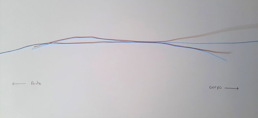 Il y a plusieurs facteurs à respecter pour choisir l’orientation de sa potence. D’une part, la résistance. Une potence dirigée vers le bas du montage sera plus solide du fait de son angle qu’une potence dirigée vers le haut. Si l’on pêche fin, cette caractéristique sera à prendre en compte, notamment à la touche. Si l’on voit la touche, comme en nymphe au fil ou en tandem, pas de soucis, on dosera le ferrage pour ne pas claquer le nœud au moment de ta tension. Au contraire, si on sent la touche, comme en noyée, parfois violente, on augmentera le diamètre si l’on garde la potence du haut ou on utilisera celle du bas si on doit pêcher fin. D’autre part, la souplesse du fil. En conservant la potence du bas, il sera plus efficace de pêcher avec un fil souple (type Nylon) qui se décollera facilement du corps de ligne. Au contraire, si l’on utilise la potence du haut, un fil rigide (type fluorocarbone) sera plus efficace.