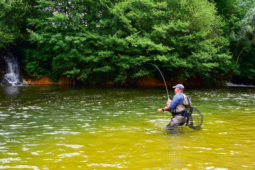 Dans le cadre de cette pêche, souvent destinée à l’ombre, on gardera la potence du haut pour écarter naturellement la mouche du corps de ligne. On privilégiera donc l’emploi du fluoro. Une potence de moins de 10/100 sera efficace, car elle maintiendra la mouche écartée.