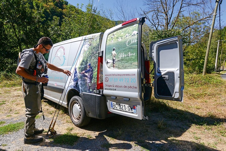 La vallée des Gaves ! C’est là que Clément Latapie est né il y a 27 ans, c’est ici qu’il vit et travaille aujourd’hui, par atavisme inévitablement, par amour pour ses truites et ses rivières sûrement. « Mon grand-père était pêcheur au toc, une vieille main qui tirait un morceau de laine de son pull en guise de guide-fil. J’avais 4 ans quand j’ai commencé à l’accompagner dans les petites rivières du coin, un éveil à la nature en guise d’héritage. J’ai la chance de vivre dans cette vallée d’Argelès-Gazost, longue seulement d’une dizaine de kilomètres, près du gave de Pau, ma rivière de cœur. Celui-ci est formé par la réunion de plusieurs Gaves dont le principal provient de la vallée de Luz-Gavarnie », explique Clément tout en préparant son matériel avec un calme et une joie de vivre communicatifs.
