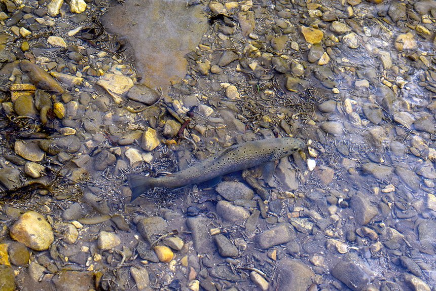 La pêche au fil plaqué s’inscrit donc dans les techniques de pêche en nymphe et se pratique dans des conditions précises. Dans l’idéal, nous ciblerons les longues zones de faible profondeur. Celles-ci devront comporter des courants relativement faibles et réguliers pour permettre à notre indicateur fluo plaqué sur l’eau de dériver sur plusieurs mètres de la façon la plus linéaire possible. La plupart du temps, les moments de l’année où nous sommes confrontés à ces facteurs sont lors des étiages estivaux ou hivernaux et parfois dès l’ouverture, comme ce fut le cas la saison passée. Les niveaux bas et la forte luminosité peuvent provoquer un réchauffement plus ou moins léger des eaux. À ces instants précis, pêcher à toute heure de la journée, en nymphe dans peu d’eau, des poissons qui se nourrissent sous la surface peut rapporter gros. En oubliant un instant l’indicateur et sur les parcours qui s’y prêtent, cette technique permet aussi de pêcher en nymphe à vue des poissons visibles et attablés. En montagne, les deux premiers mois précédant l’ouverture de la première catégorie présentent régulièrement des eaux froides, basses et claires. Celles-ci sont dues au maintien du manteau neigeux en altitude et ne favorisent ni le développement benthique, ni l’activité des poissons. Les rares éclosions sont donc destinées aux heures les plus chaudes de la journée, et la pêche en nymphe au fil plaqué prend ici tout son sens pour celui qui privilégie la régularité.