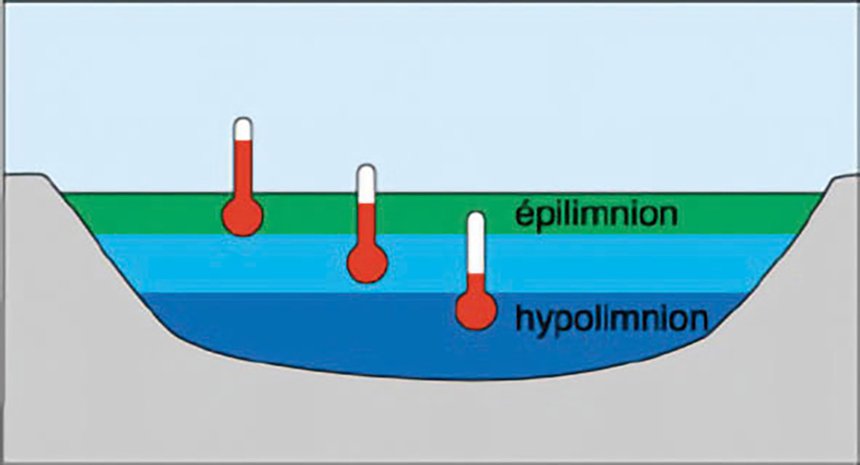 De ce fait, en lac, notamment les plus profonds, la température de l’eau n’est pas égale dans l’ensemble de la colonne et se répartit selon sa densité, l’eau la plus dense (à 4 °C) se trouvant au fond du lac.