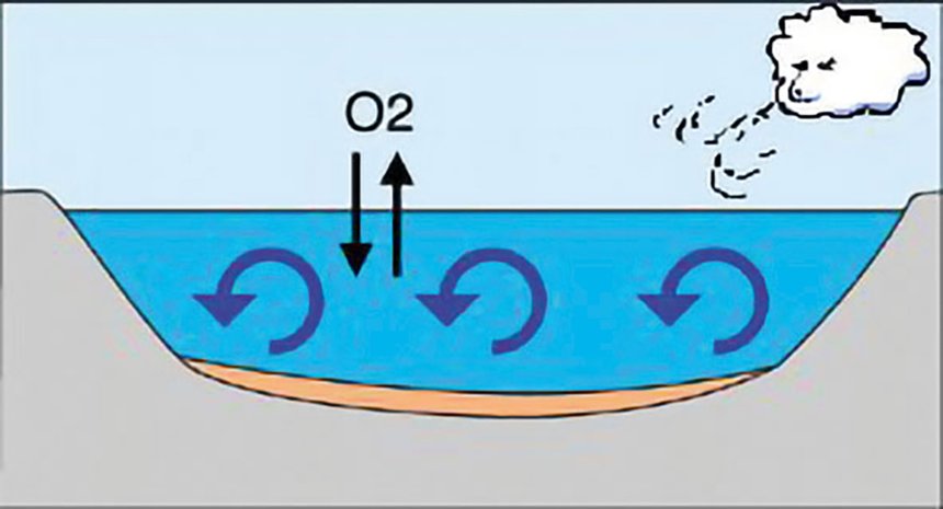 À l’automne, avec la chute des températures, la surface de l’eau va se refroidir et gagner en densité dès lors qu’on atteindra les 10 °C. Le plan d’eau va donc se « renverser », ce qui occasionnera un changement de turbidité temporaire, mais permettra de faire descendre l’oxygène de la couche de surface vers la profondeur.