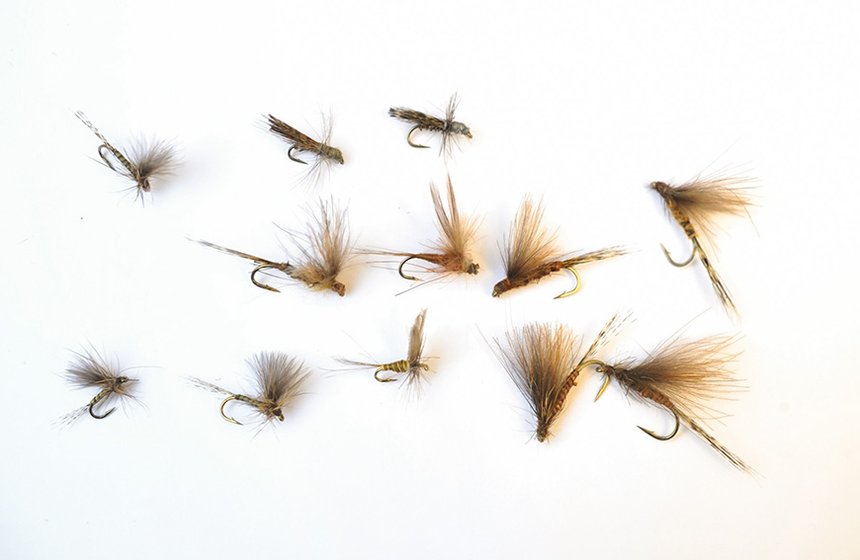 C’est bien évidemment le moment de sortir de ses boîtes des imitations de March Brown. Ces dernières apparaissent en général entre 11 h et 13 h et déclenchent toujours une activité en surface. On imite en priorité le stade subimago, mais les imagos sont également très attractifs. On choisira des modèles à corps variant du brun cannelle assez clair au brun foncé, voire très foncé, surtout pour les subimagos. Quant à la taille, un modèle en numéro 14 fait parfaitement l’affaire, même si, dans certains cas, on peut essayer un gros modèle en 12. Les postes les plus favorables sont les fins des grandes gravières dans les creux qui se forment juste en amont des seuils ou les lisses assez lents au fond encombré de galets. Mais d’autres mouches doivent également se trouver dans vos boîtes au moment de l’ouverture. Il s’agit bien sûr des imitations de Baetis, désormais classiques, et des modèles figurant de petits plécoptères ou de petits trichoptères. Inutile d’emporter avec vous des dizaines de modèles, ces trois types de mouches suffisant largement pour le jour J. Les « olives » éclosent volontiers dans les lisses assez lents et les petits plécoptères ou les petits trichoptères fréquentent les milieux plus agités comme les courants assez vifs. Mais ne perdez pas de vue que les truites rechignent un peu à se tenir longtemps sur ce type de postes à l’heure de l’ouverture, préférant les zones un peu plus profondes et lentes des bordures.