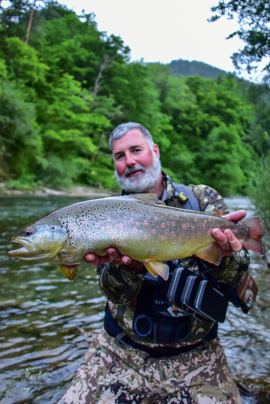 En torrent, la première des règles est qu’il n’y a pas de règle ! Et surtout sur les rivières soumises à la fonte des neiges. Au cours d’une seule journée, ce phénomène dicte les approches, faisant évoluer de façon assez stéréotypée les stratégies de pêche. Personnellement, je suis un schéma assez précis. Le matin, les températures fraîches de la nuit offrent des eaux plutôt basses mais aussi plus claires. L’heure pour moi est à la prospection rapide en sèche, lorsque cela est possible. Les grands modèles d’ensemble bénéficiant d’une haute flottaison font souvent des merveilles. Il est bon de privilégier les secteurs les plus ensoleillés et les parcours les moins tumultueux. À cette période et surtout en sèche, il est primordial de multiplier les dérives sur les secteurs que l’on pense prometteurs. La densité impose un instinct de territorialité important. Les meilleures places seront donc attribuées aux plus dominants et par conséquent aux plus gros. Les secteurs à beaux poissons sont en principe bien marqués et méritent que l’on s’y attarde. À mon habitude, sur ces secteurs j’utilise des cannes courtes (entre 6’ # 3/4 et 7’5 #3/4) pour une action assez rapide, dans l’objectif de pêcher court et précis sur ces postes parfois encombrés tout en utilisant des mouches parfois volumineuses.